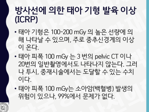 일반적인 스탠다드나 파노라마, 덴탈 CT 촬영 모두 이 기준의 수천 분의 일 수준이기 때문에 현실적으로는 태아에게 해가 거의 없다고 판단됩니다.